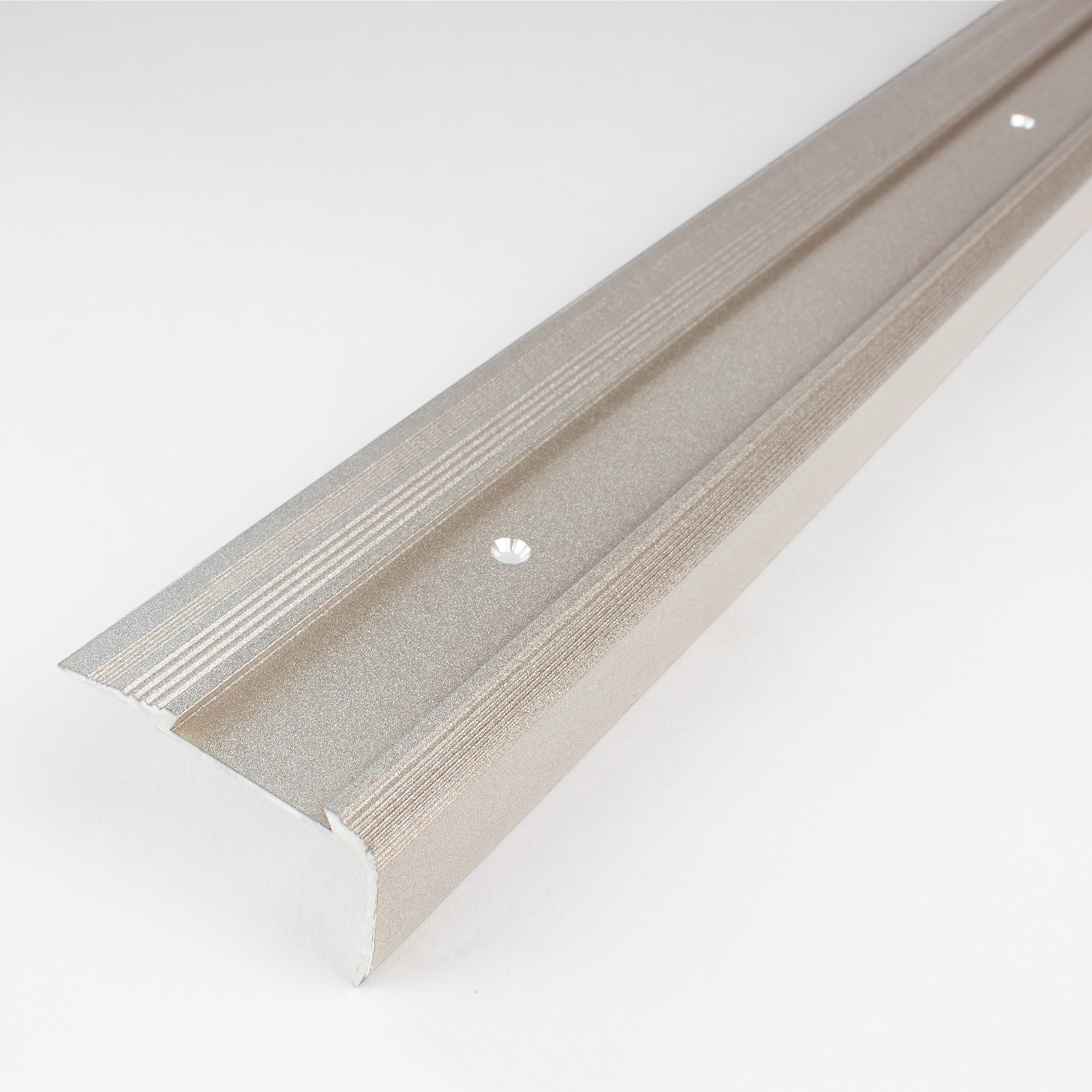 Hinweis zum Lieferumfang: Die Treppenkanten Profile werden OHNE Einlage geliefert. Die passenden PVC Einlagen können Sie unter dem Reiter "Zubehör" dazu bestellen.