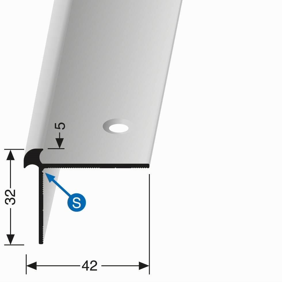 Treppenkantenprofil 32 x 42 mm Aluminium Winkelprofil Glatt Versenkt Gebohrt Küberit