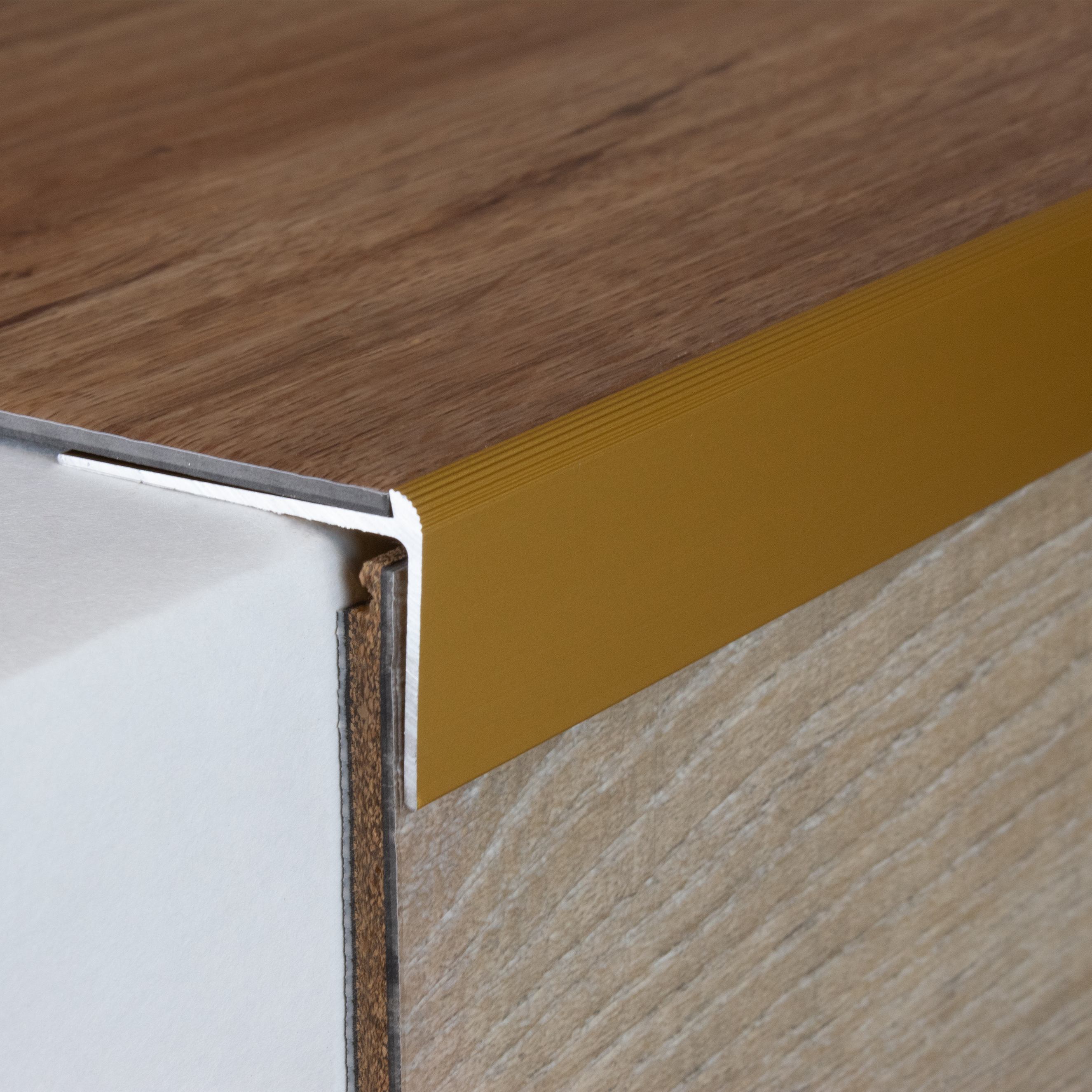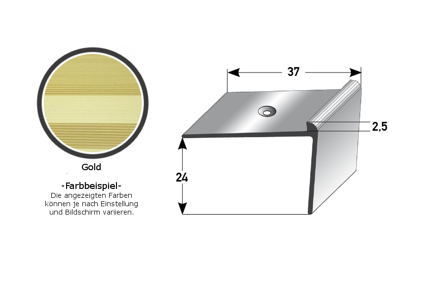 - GRÖSSE: Das Winkelprofil mit den Abmessungen 37 x 24 x 2700 mm hat eine Einfasshöhe von 2.5 mm und schafft einen sauberen Abschluss an der Treppenkante.